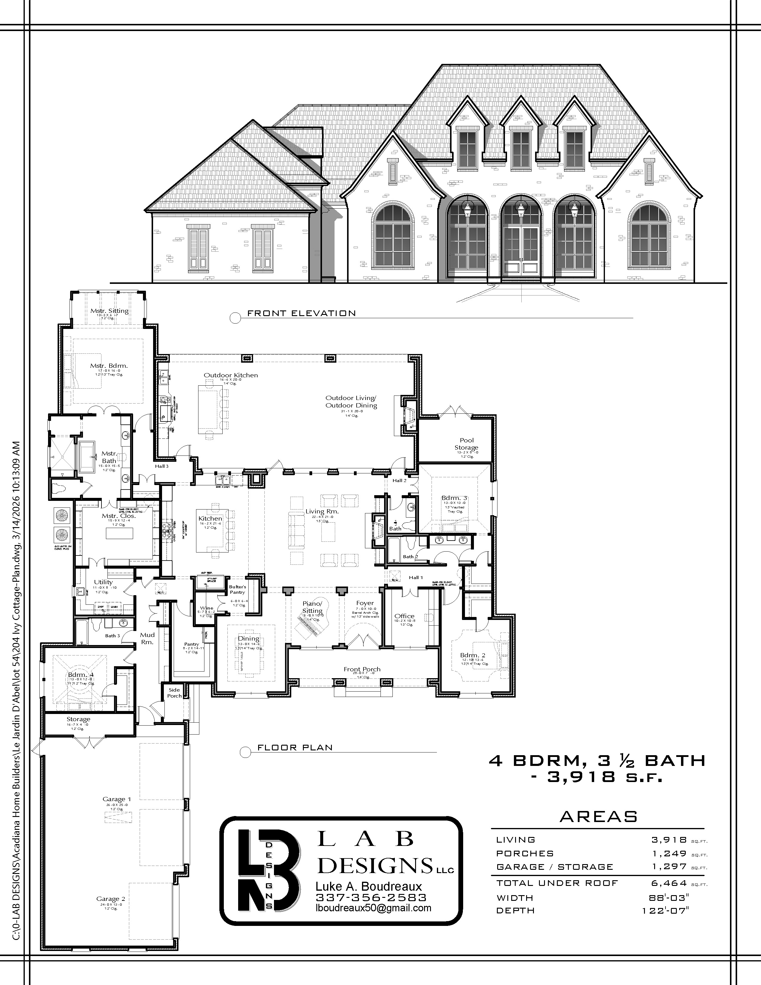 • 6,464 sq ft total under roof including porches and garage